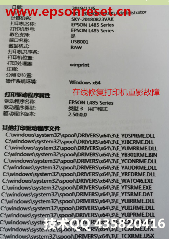 牛人解决爱普生L485 L4168 L系列机器左右重影问题 在线修复刷机