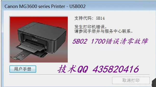 佳能全系列打印机清零 5B00 废墨收集器满 5B01 5B02 1700 1702 5B02 5B14请求维护!